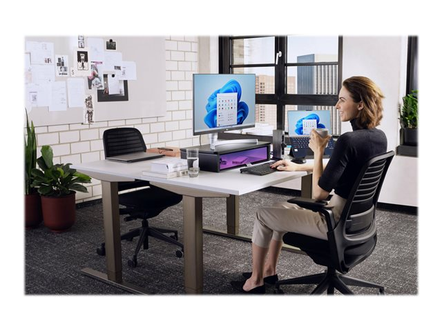 EgenskaperSterilisering av UV-ljus, UVC LED-desinficerings-/förvaringsfack (20" x 11" x 3,5"), 34-tums monitorstöd, stöd för dubbla 24" skärmar