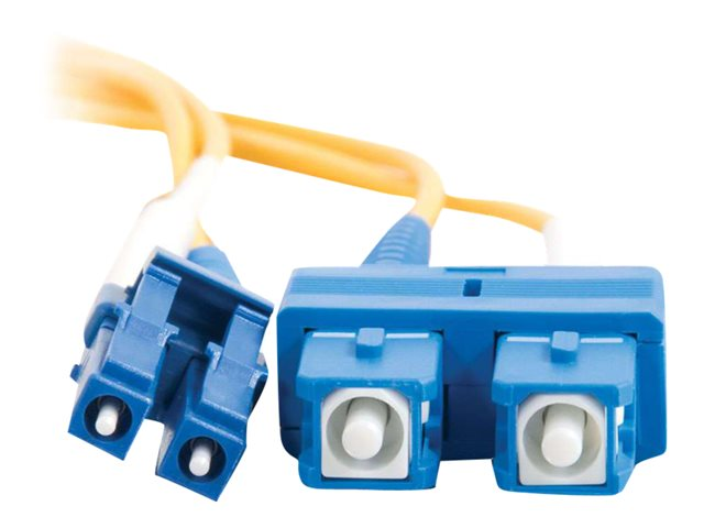 C2G LC-SC 9/125 OS1 Duplex Singlemode PVC Fiber Optic Cable (LSZH) - Patch-kabel - SC enkelläge (hane) till LC enkelläge (hane) - 10 m - 10 m - fiberoptisk - duplex - 9 / 125 mikrometer - OS1 - halogenfri - gul