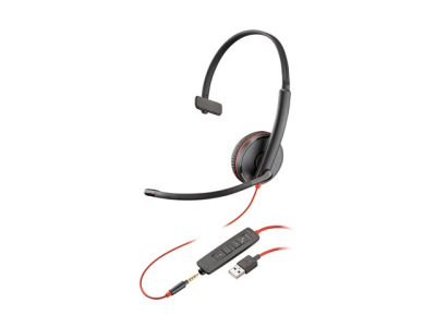 HP Poly Blackwire 3215 - Blackwire 3200 Series - headset - på örat - kabelansluten - USB-A, 3,5 mm kontakt - svart - Skype-certifierat, Cisco Jabber-certifierad, Avaya-certifierad