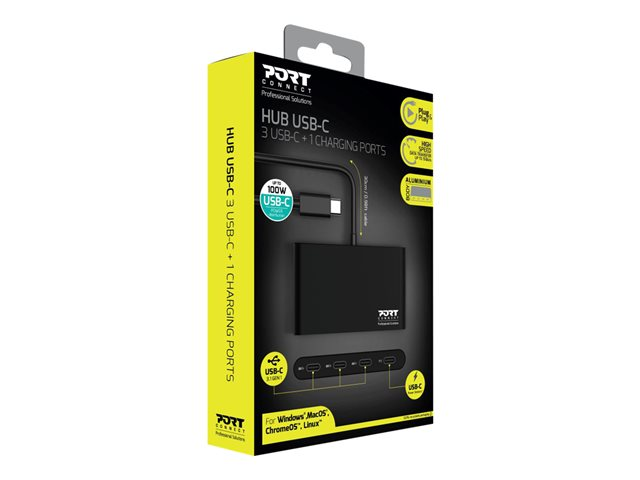 PORT Connect USB-C Hub erbjuder ett smidigt och effektivt sätt att ansluta flera enheter med sin kompakta design. Denna stationära hubb har fyra USB-portar, vilket gör att användarna enkelt kan utöka sina anslutningsmöjligheter. Hubben uppfyller USB 3.1 Gen 1-standarderna och stöder en dataöverföringshastighet på 5 Gbps, vilket möjliggör snabb och tillförlitlig datadelning. Hubben drivs via USB och har även USB Power Delivery-funktion, vilket gör det möjligt att ladda enheter med hastigheter på upp till 100 W. Aluminiumhöljet bidrar till hållbarheten samtidigt som det ger ett elegant utseende, vilket gör den till ett värdefullt tillskott till alla arbetsplatser.
