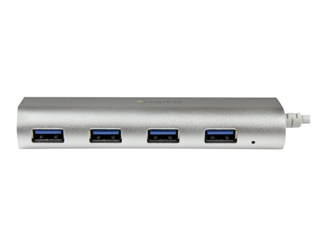 Denna bärbara USB 3.0-hubb med 4 portar är skräddarsydd att matcha din eleganta MacBook eller bärbara dator med en liknande matt silveryta. Den har ett slimmat sandblästrat silverhölje som passar perfekt jämte din bärbara Apple-dator och eftersom hubben är designad med ett solitt aluminiumhölje har den en lätt hållbarhet som är idealisk för användning antingen vid resor eller på skrivbordet. Den har dessutom en längre kabel på 27 cm så att du har flexibiliteten att placera hubben och dina enheter exakt där du behöver dem. Ser snygg ut samtidigt som den utökar dina anslutningar Denna USB-hubb i Apple-stil av hög kvalitet är ett enkelt sätt att ge din MacBook flera anslutningar. Den har fyra USB 3.0-hubbportar (även känt som USB 3.1 Gen 1) i ett kompakt hölje. Dess sandblästrade silveryta har ett unikt och elegant utseende jämfört med traditionella hubbar. Nu kan din USB-hubb se lika trendig och modern ut som din MacBook eller Ultrabook eller din bärbara dator med liknande yta eller nyans. Hubbens inbyggda USB-kabel är tillräckligt lång för att nå din bärbara dators USB 3.0-port oavsett var porten sitter. Dessutom ger den förlängda kabeln dig fler möjligheter vid placering på skrivbordet. Bärbar och tålig Om du letar efter bärbarhet kan denna hubb hjälpa till. Dess kompakta och lätta design gör den idealisk för resor. Med den inbyggda USB-kabeln får den mångsidiga hubben dessutom enkelt plats i resväskan och du slipper bära på en separat strömadapter. Med det tåliga aluminiumhöljet ger hubben tillförlitligt skydd så den är perfekt för resor fram och tillbaka från hemmet till kontoret. Dessutom tar den kompakta USB-hubben minimalt med plats på skrivbordet så att du kan använda den vid hot desks eller i BYOD-miljöer (Bring Your Own Device). Spara pengar och tid Denna bussdrivna hubb är kompatibel med plug-and-play och hot swap så att du kan installera den snabbt utan att extra drivrutiner eller program behövs. Du slipper dessutom besväret och kostnaden av att köpa nya enheter genom att använda USB 3.0-hubben med dina befintliga USB 2.0- och 1.x-enheter. ST43004UA täcks av StarTech.coms 2-årsgaranti och gratis livstidsgaranti på teknisk support.