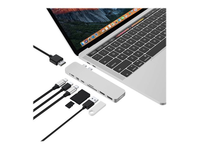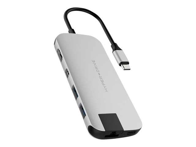 HyperDrive Pro 8-in-2 Hub - Dockningsstation - USB-C x 2 - HDMI, Mini DP GN28D-SILVER